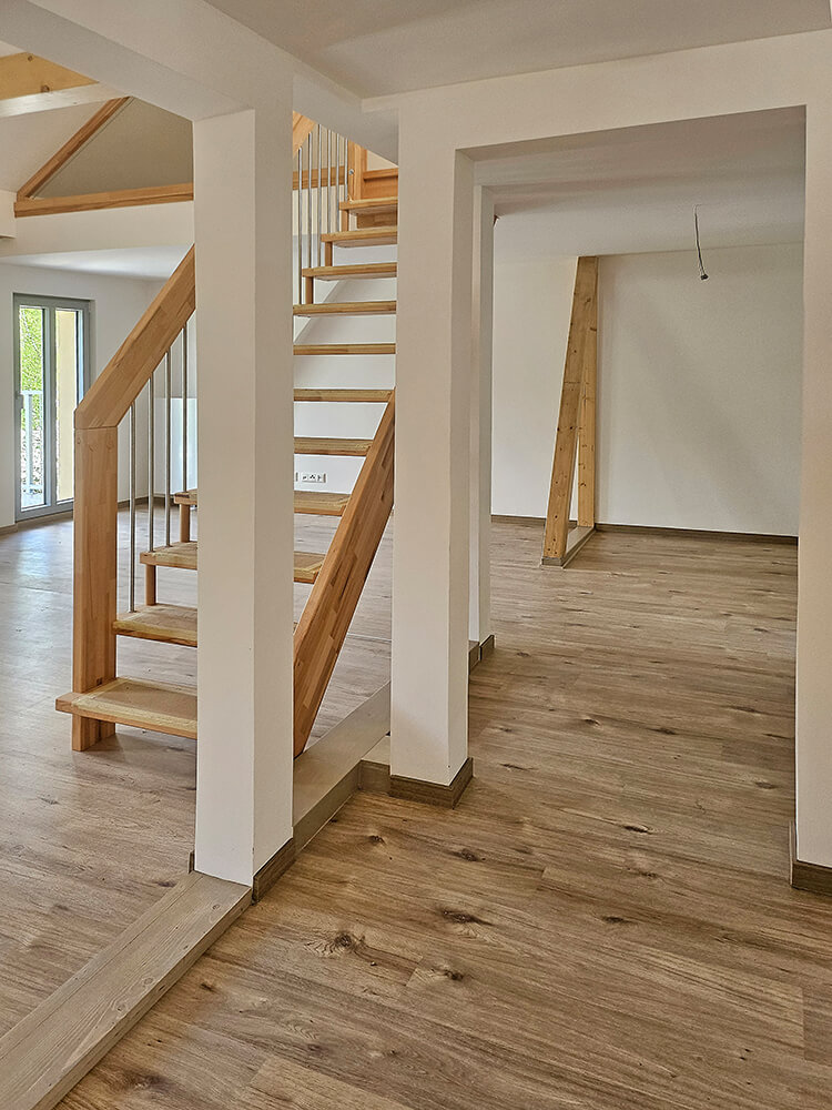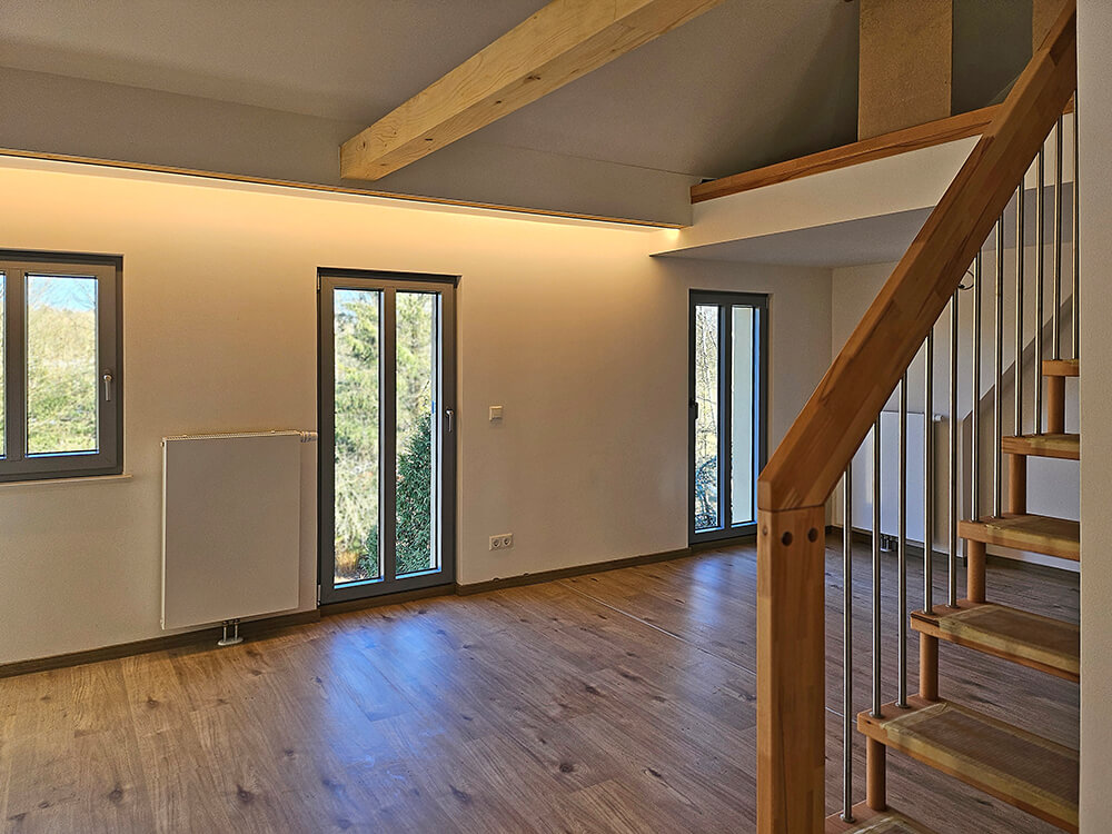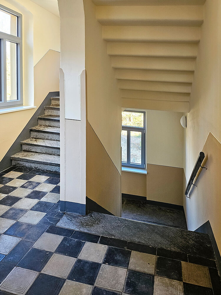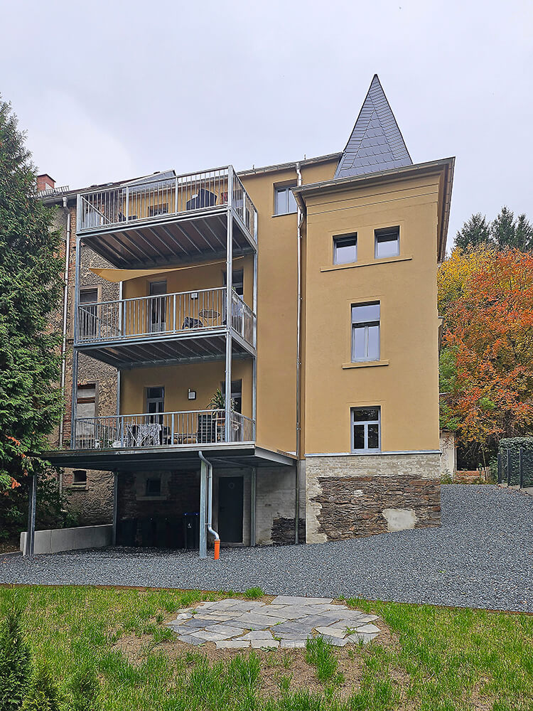 wandelte sich dieses Reihenendhaus aus der Gründerzeit. Neben grundhafter Sanierung erfolgte der hofseitige Abriß der Trockenklosetts sowie Anbau einer großzügigen Balkonanlage mit Carport. Aus dem Dachstuhl mit Bodenkammern und Wäscheboden entstand eine großzügige Maisonette-Wohnung.